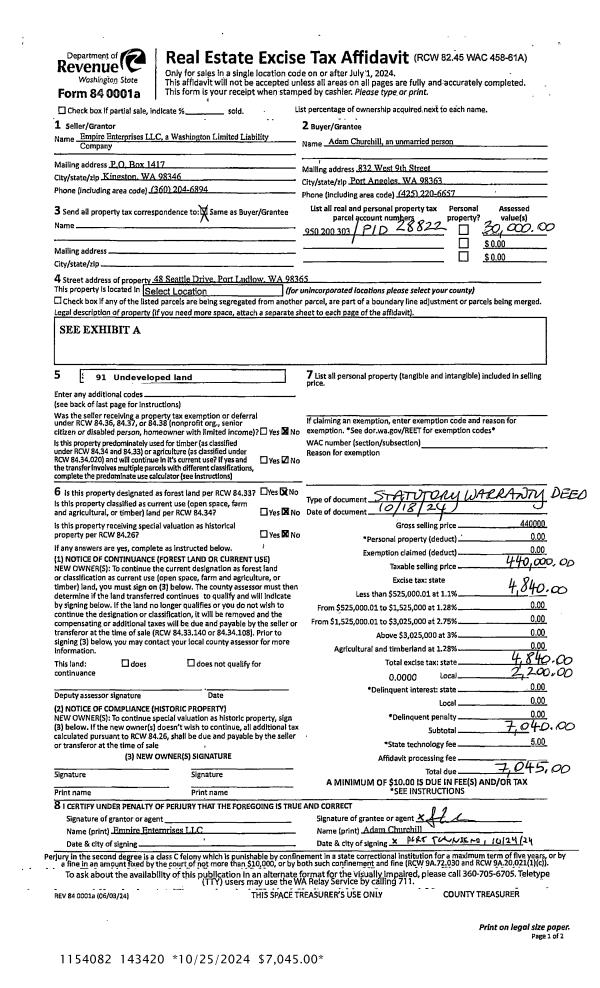 | Property ID: | 35305 | Abbreviated Legal Description: | NOLTON'S 1ST TO PORT TOWNSEND LOT 7 |