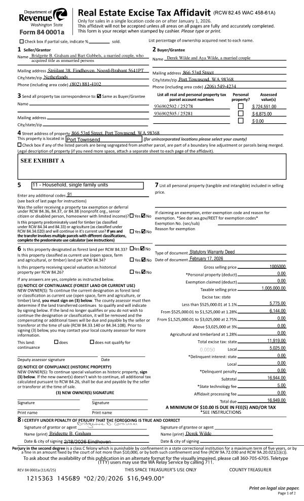 | Mailing Address: | 8593 FLAGLER RD NORDLAND, WA 98358-9648 | % Ownership: | 100.0000000000% |