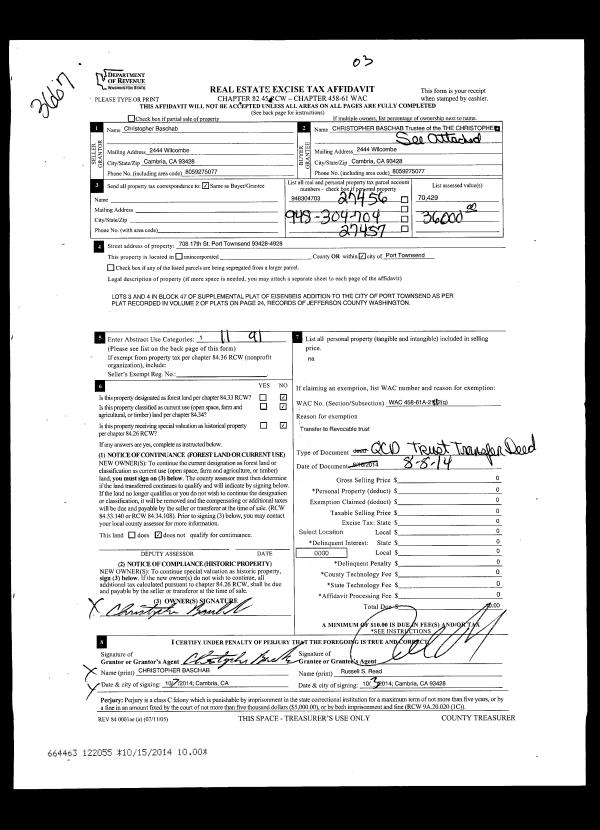 | 3 | 01/21/2016 | TRED | Trustee Deed | M W BARCLAY III | WEST COAST SERVICING INC | | | | 124766 | |