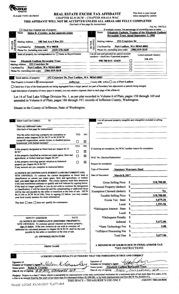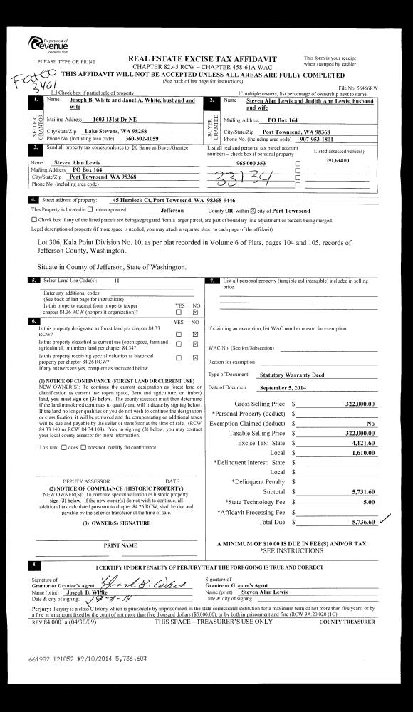 | Mailing Address: | FRANCES L WHELAN 2615 E MARROWSTONE RD NORDLAND, WA 98358-9519 | % Ownership: | 100.0000000000% |
