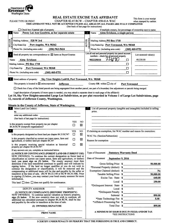 | 17 | 09/09/1993 | SWD | Statutory Warranty Deed | JOHNSON, PETER/HALI K | TAYLOR, MAGIE J | 0 | 0 | $0.00 | 72841 | 0 |