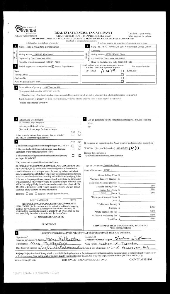 | 1 | 11/16/2016 | QCD | Quit Claim Deed | | | | | | 126664 | |