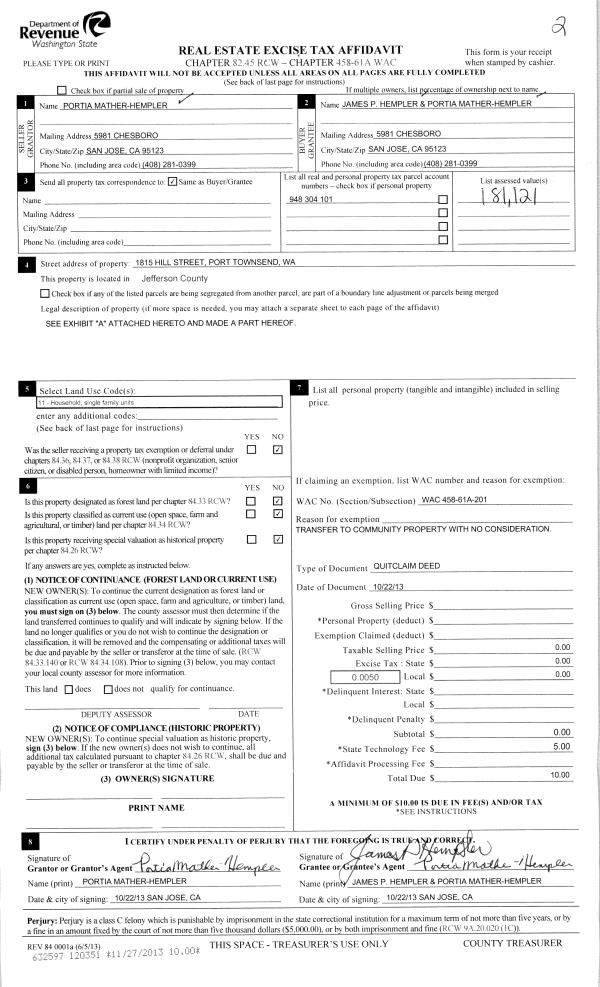 | 6 | 05/01/2014 | QCD | Quit Claim Deed | CARL H JOHNSON | CARL JOHNSON REVOCABLE TRUST | | | | 121156 | |