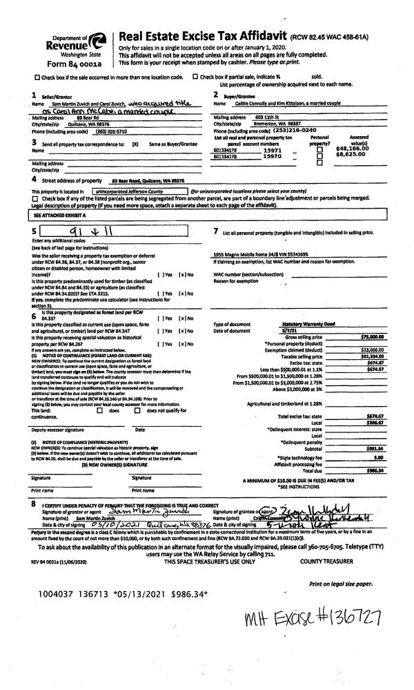 | 1 | 4555-1535F | High Bank Waterfront Marrowstone | 0.0000 | 0.00 | 0.00 | 0.00 | 0.00 | $287,500 | $0 |