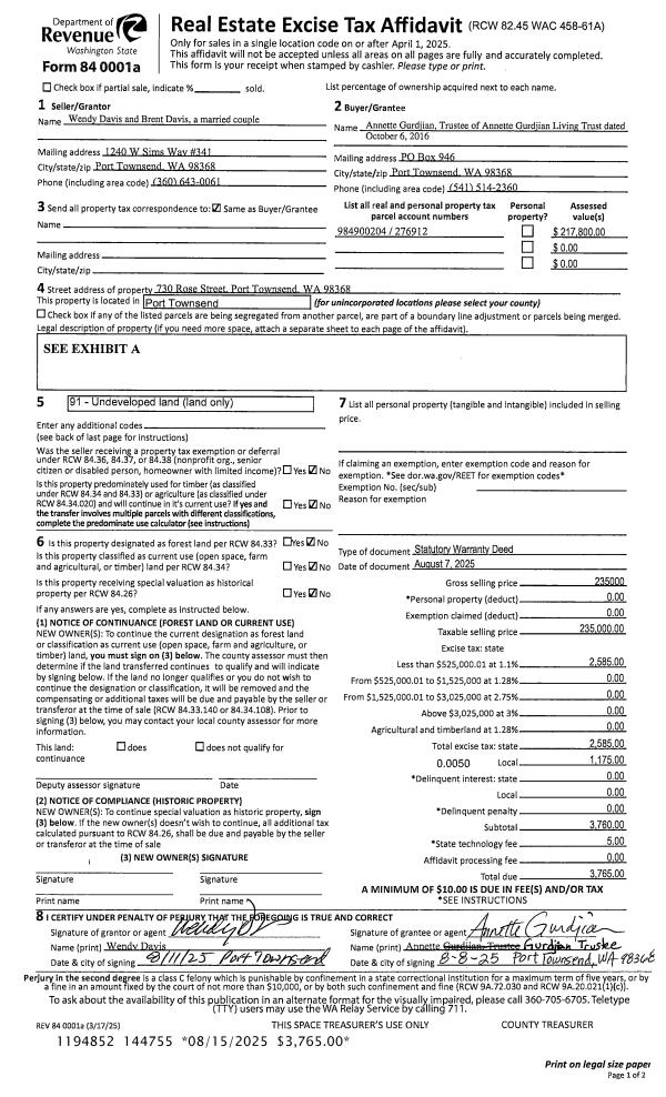 | 2 | 4555-1535F | High Bank Waterfront Marrowstone | 0.0000 | 0.00 | 0.00 | 0.00 | 0.00 | $104,742 | $0 |