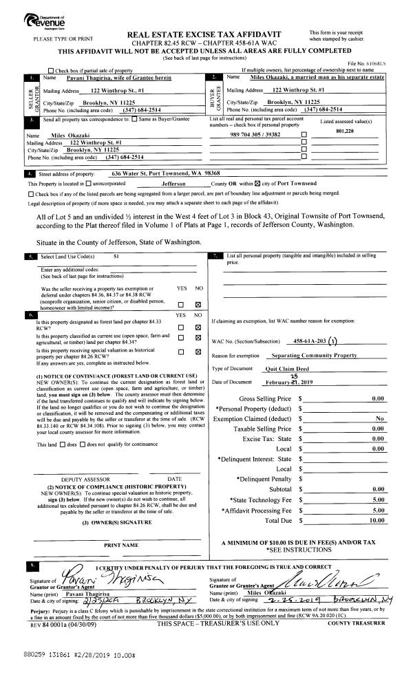 | Mailing Address: | 7064 FLAGLER RD NORDLAND, WA 98358 | % Ownership: | 100.0000000000% |