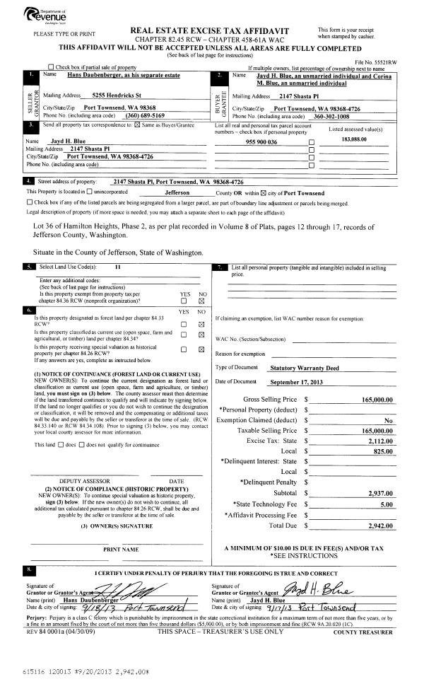 | 1 | 10/13/2014 | SWD | Statutory Warranty Deed | MICHAEL C REDLING | WARD A & EVANGELINE D MEFFORD | | | $592,500.00 | 122164 | |