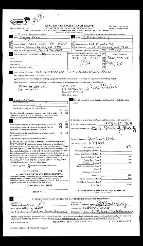 | 2 | 05/22/2017 | SWD | Statutory Warranty Deed | ABSTON HENRICKSEN LAND & TIMBER CO | ERIK NEWQUIST & RADHA NEWSOM | | | $95,000.00 | 127739 | |