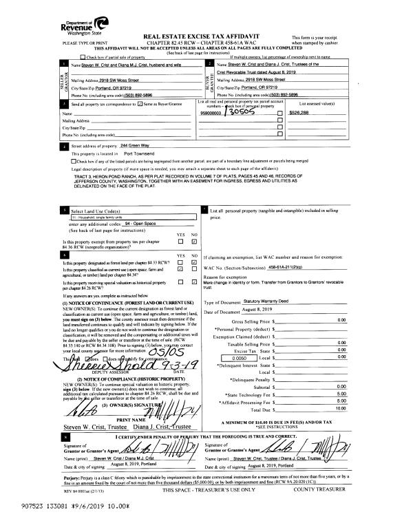 | 1 | 4555-1535F | High Bank Waterfront Marrowstone | 0.0000 | 0.00 | 0.00 | 0.00 | 0.00 | $499,388 | $0 |