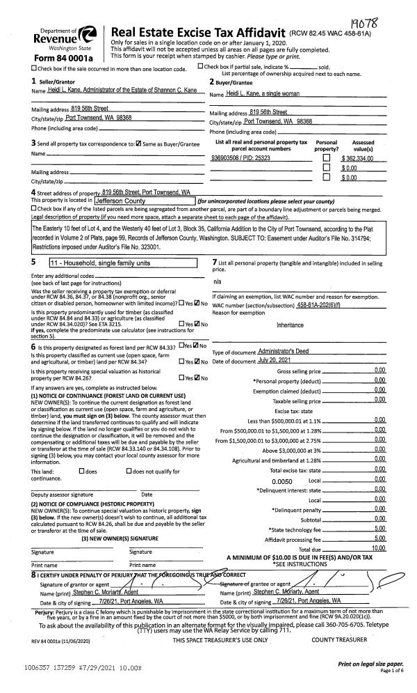 | Mailing Address: | 493 SNAGSTEAD WY PORT TOWNSEND, WA 98368 | % Ownership: | 100.0000000000% |