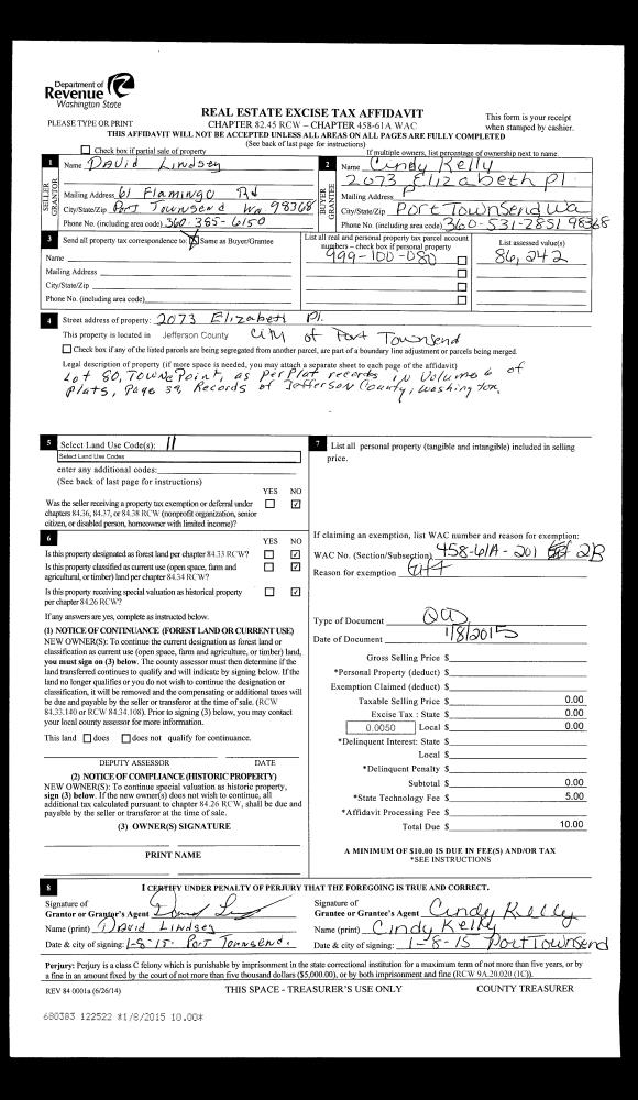 | Mailing Address: | JUDITH D WALLS REV TRUST 190 N BAY WAY PORT LUDLOW, WA 98365-9404 | % Ownership: | 100.0000000000% |