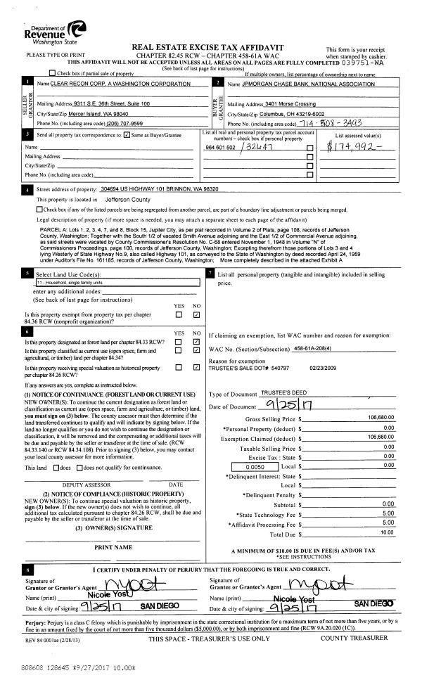 | 5 | 03/03/1993 | SWD | Statutory Warranty Deed | SIEWERS, RICHARD J | DAVIES, JOHN S/MARCA J | 0 | 0 | $19,000.00 | 70642 | 0 |