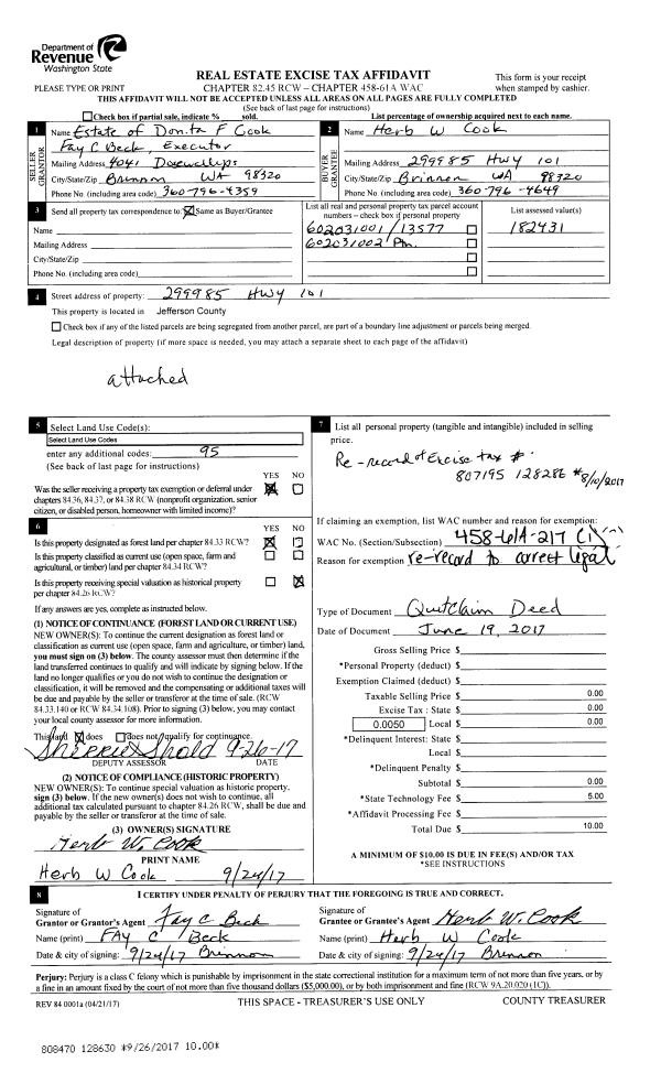 | Mailing Address: | 5352 CAPE GEORGE RD PORT TOWNSEND, WA 98368-9036 | % Ownership: | 100.0000000000% |