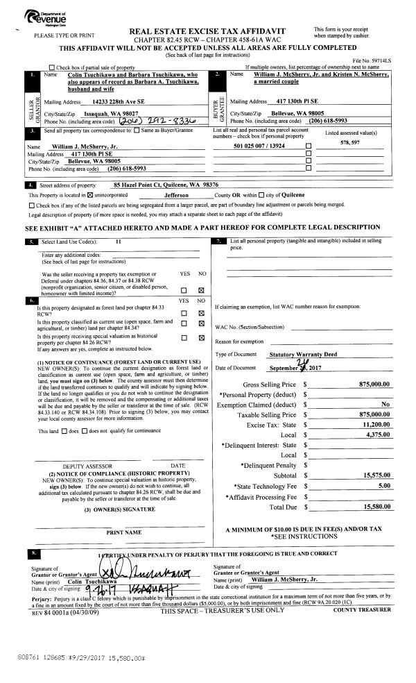 | Mailing Address: | 83 MYRTLE ST PORT TOWNSEND, WA 98368-7200 | % Ownership: | 100.0000000000% |