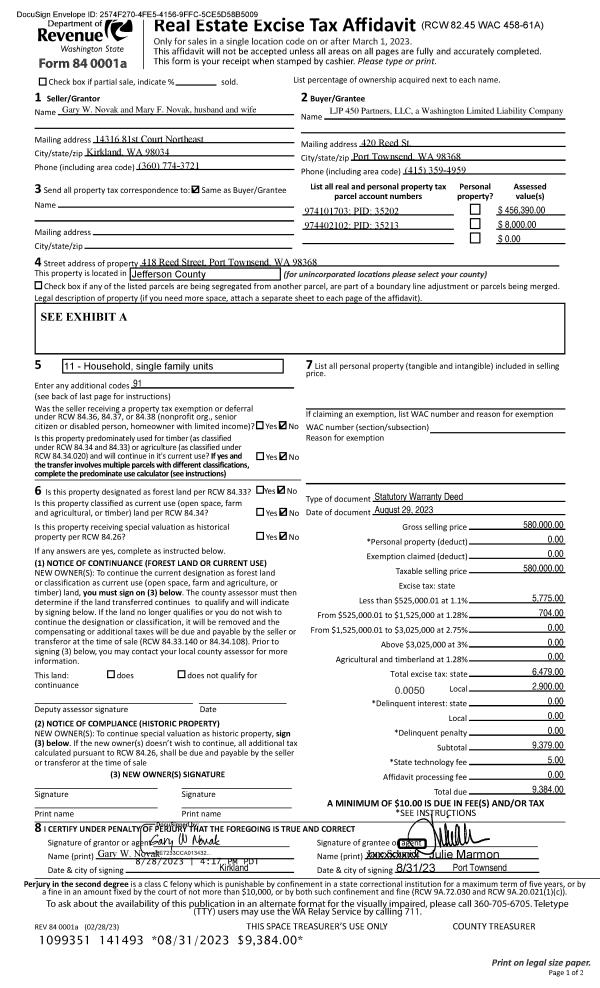| Mailing Address: | 180 COMBS ST PORT TOWNSEND, WA 98368-9626 | % Ownership: | 100.0000000000% |