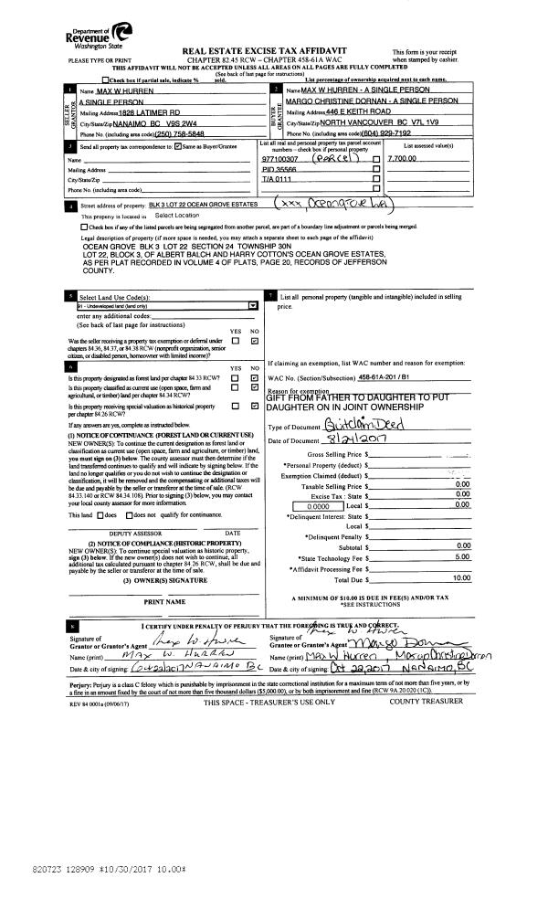 | 4 | 07/02/1993 | SWD | Statutory Warranty Deed | OCEAN GROVE TRUST/OWNERS | NELSON, RICHARD M/JOAN P | 0 | 0 | $0.00 | 71659 | 0 |