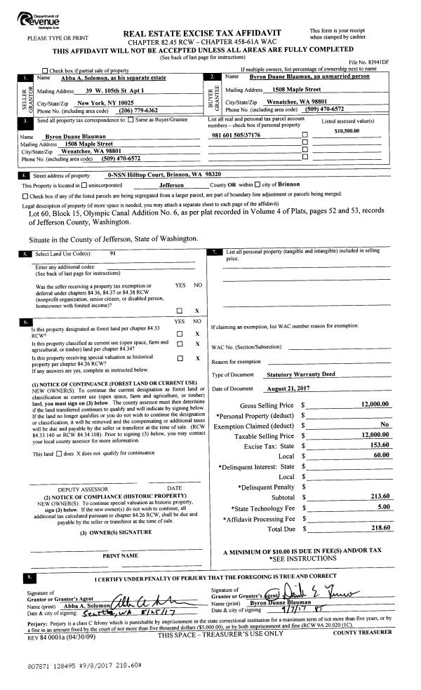 | 4 | 06/20/1995 | SWD | Statutory Warranty Deed | OCEAN GROVE TRUST | NELSON, RICHARD M/JOAN P | 0 | 0 | $10,500.00 | 77262 | 0 |