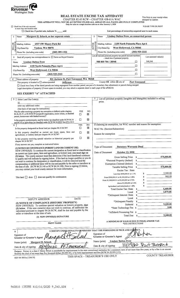 | Mailing Address: | 340 HUNTINGFORD ST PORT TOWNSEND, WA 98368-9075 | % Ownership: | 100.0000000000% |