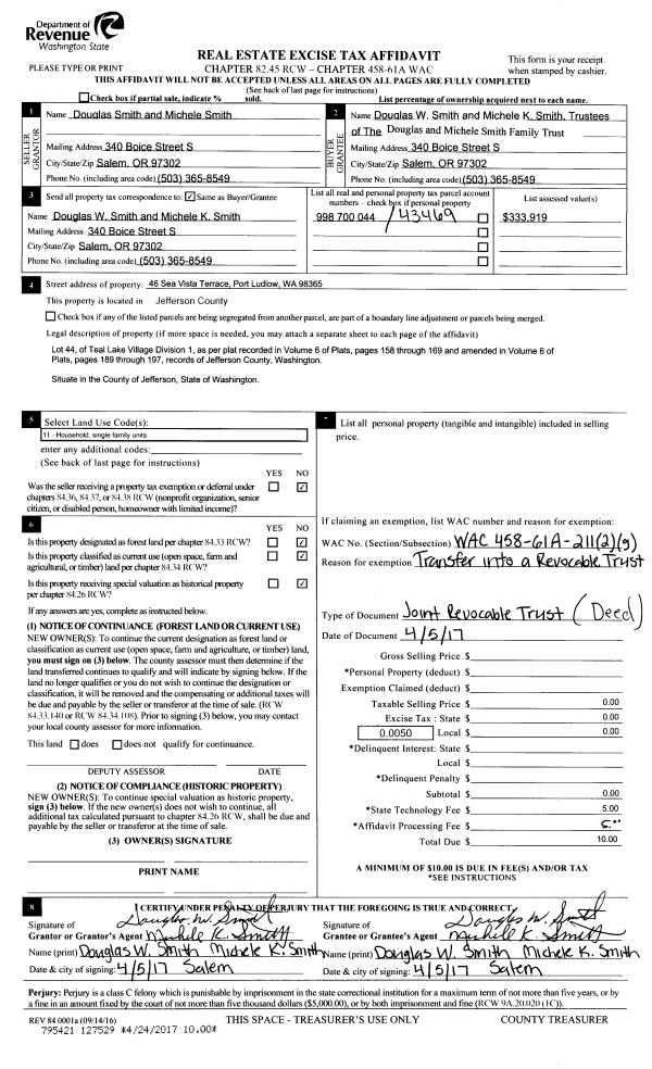 | Mailing Address: | 154 MASONIC HALL RD PORT HADLOCK, WA 98339-9538 | % Ownership: | 100.0000000000% |