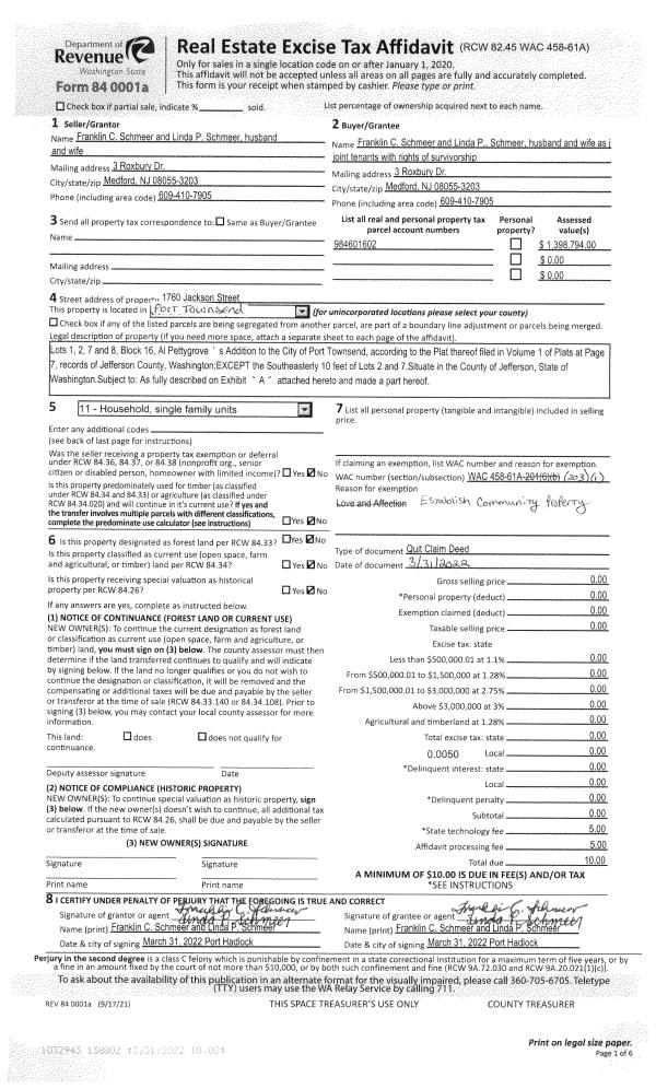 | 6 | 11/21/2002 | SWD | Statutory Warranty Deed | STRANDSKOV TRUST, JEAN D | GILMORE, THOMAS L/LEONA E | 0 | 0 | $160,000.00 | 96043 | 0 |