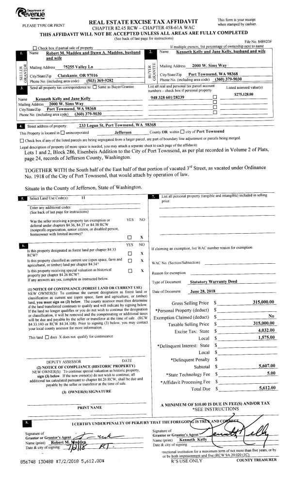 | 1 | 09/01/2020 | SWD | Statutory Warranty Deed | ROBERT H DISHINGTON | NANCY WELLIVER & SHERRY R STUDLEY | | | $125,000.00 | 135038 | |