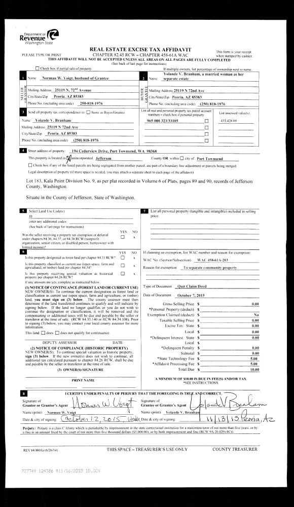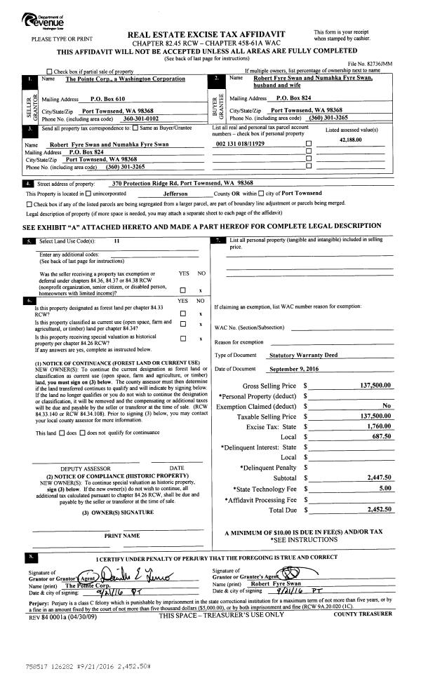 | Mailing Address: | PO BOX 492 PORT HADLOCK, WA 98339 | % Ownership: | 100.0000000000% |