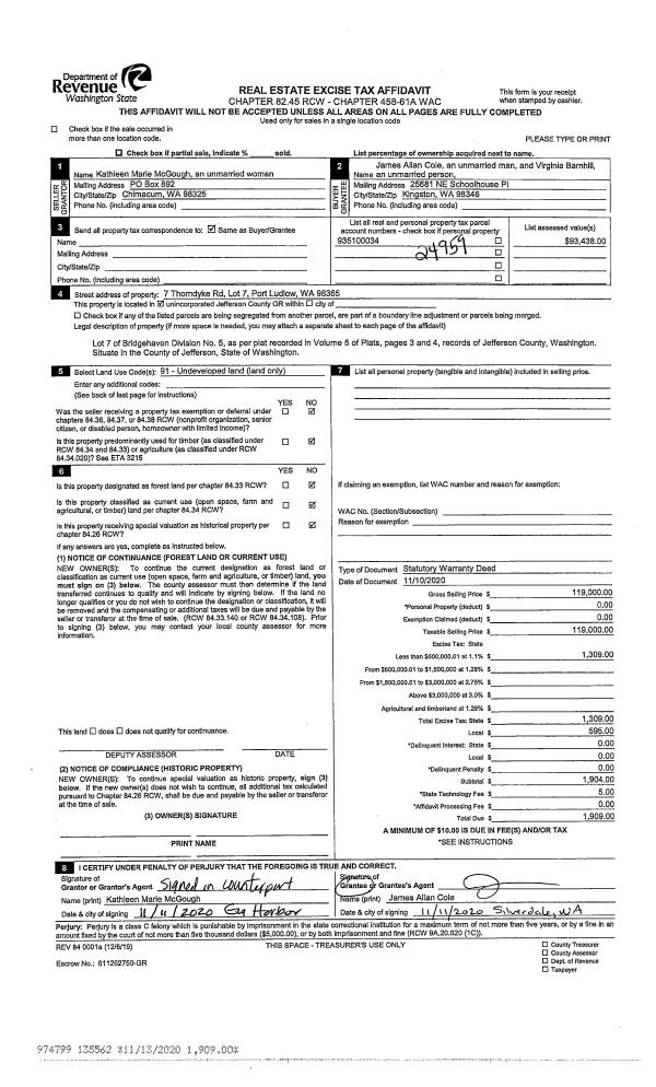 | Mailing Address: | KATHLEEN JAKSE TRUSTEE 390 MEADE RD NORDLAND, WA 98358-9693 | % Ownership: | 100.0000000000% |