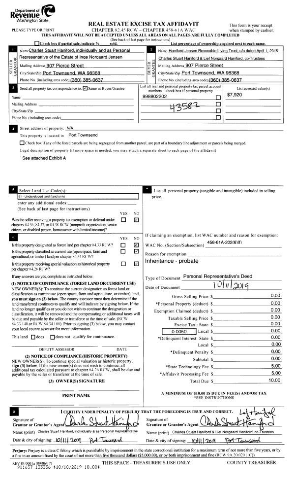 | 1 | 4615-1555A | Marrowstone Is Avg Wtr View <6 Acres | 1.9600 | 85377.60 | 0.00 | 0.00 | 0.00 | $68,992 | $0 |