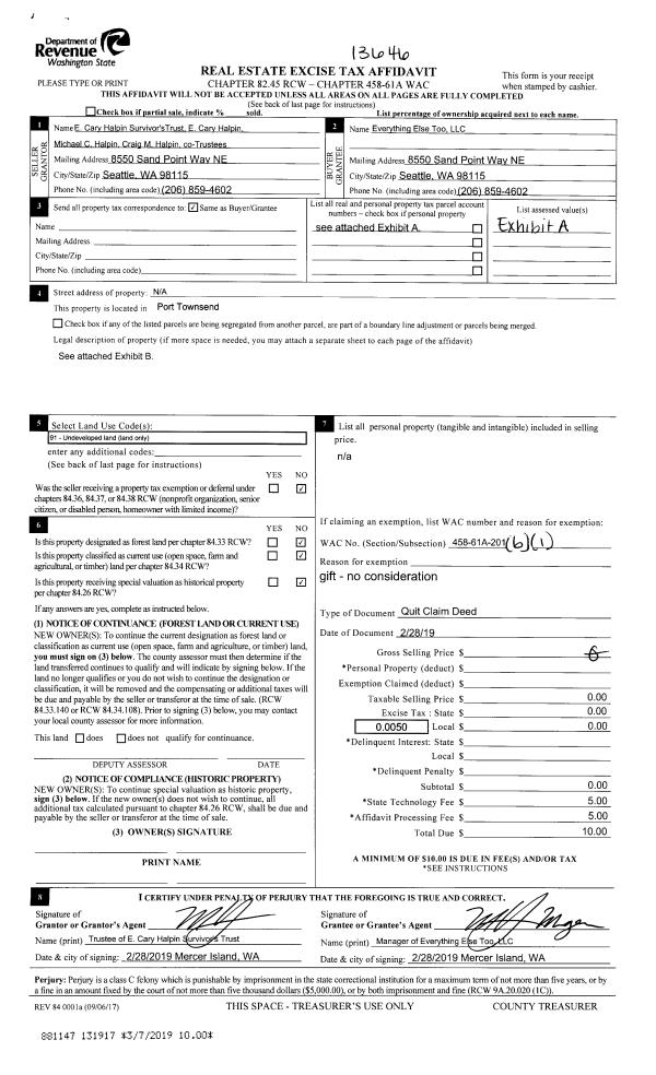 | Mailing Address: | 1930 LAWRENCE ST #32 PORT TOWNSEND, WA 98368 | % Ownership: | 100.0000000000% |
