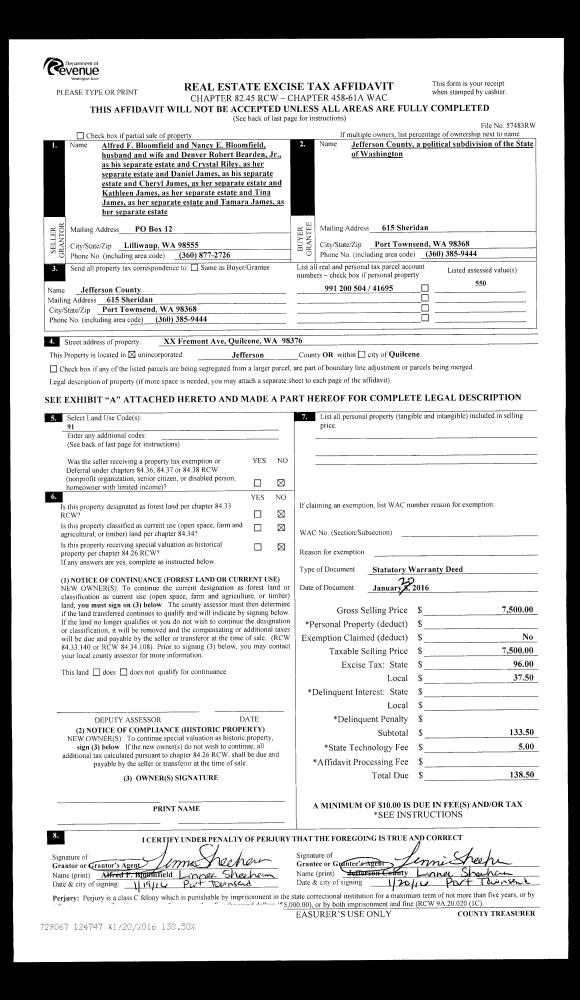 | 1 | 01/22/2015 | SWD | Statutory Warranty Deed | MC CULLOUGH REAL ESTATE LLC | BERYL J WILLIAMSON | | | $92,500.00 | 122603 | |