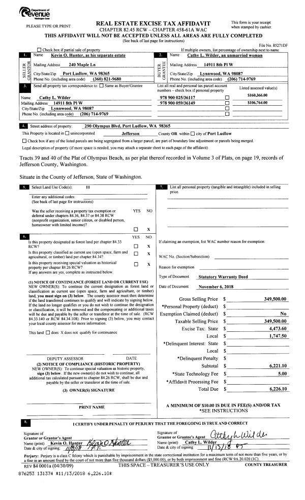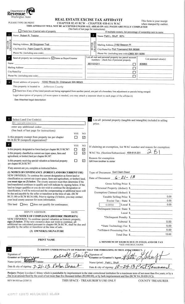 | Mailing Address: | 1015 55TH ST PORT TOWNSEND, WA 98368-1242 | % Ownership: | 100.0000000000% |