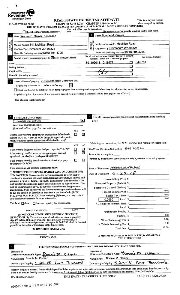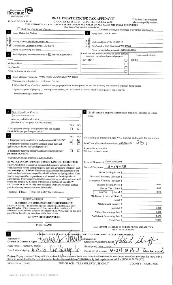 | Mailing Address: | JONA & WAYNE L FITCH 1206 MONROE ST PORT TOWNSEND, WA 98368-4432 | % Ownership: | 100.0000000000% |