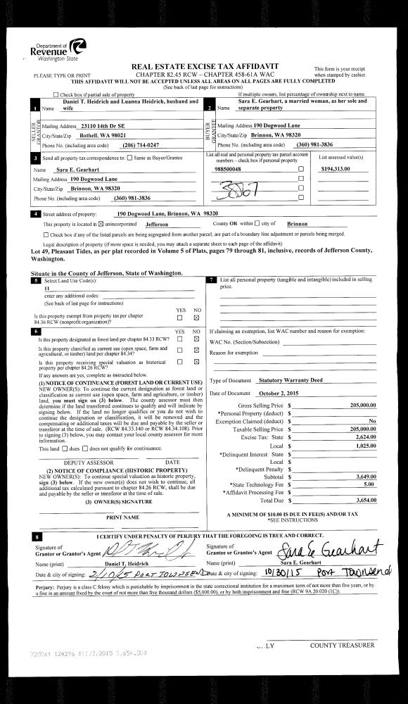 | 2 | 09/07/2016 | SWD | Statutory Warranty Deed | LUCINDA GRACE TRUSTEE | LORI CALLAHAN | | | $161,900.00 | 126230 | |