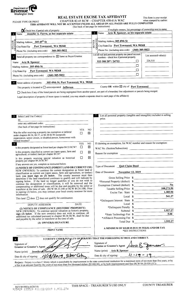 | Mailing Address: | 10534 RHODY DR PORT HADLOCK, WA 98339-9746 | % Ownership: | 100.0000000000% |