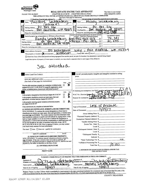 | Mailing Address: | 6062 STATE ROUTE 20 UNIT 36 PORT TOWNSEND, WA 98368-9301 | % Ownership: | 100.0000000000% |