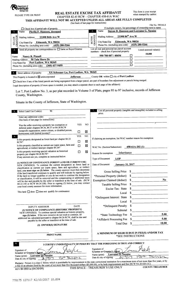 | Mailing Address: | 6062 STATE ROUTE 20 SPACE 39 PORT TOWNSEND, WA 98368-9301 | % Ownership: | 100.0000000000% |