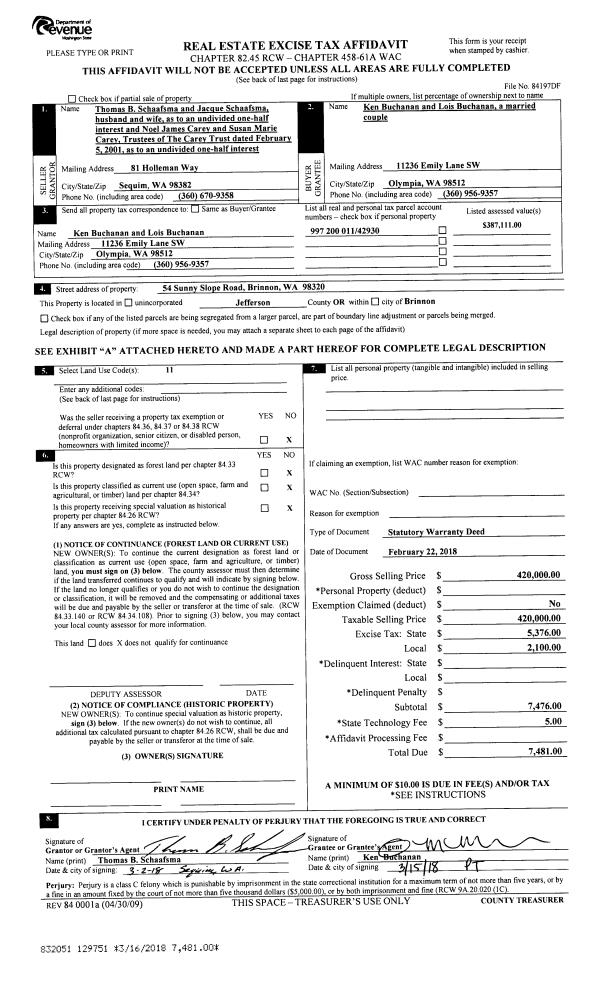 | 1 | 12/31/2018 | MH | Mobile Home | OLYMPIC VILLAGE MHP LLC | AARON VANDENBERG | | | $2,600.00 | 131736 | |