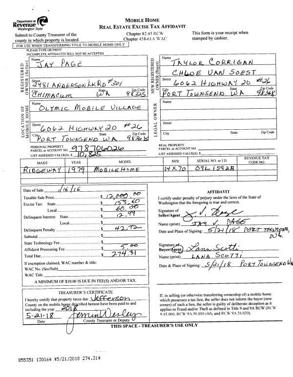 | Mailing Address: | 150 MT CHRISTIE CT PORT LUDLOW, WA 98365-8257 | % Ownership: | 100.0000000000% |