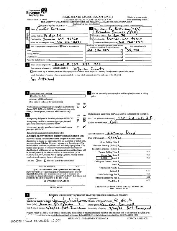 | 1 | 08/12/2021 | QCD | Quit Claim Deed | JEFFERY G & PEGGY L WELKER | JEFFERY G WELKER TRUSTEE | | | | 137718 | |