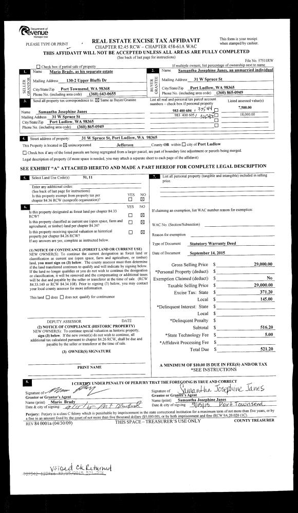 | 2 | 11/09/2003 | SWD | Statutory Warranty Deed | PORT LUDLOW ASSOCIATED LL | MAIN, CHARLES R/EDITH P | 0 | 0 | $440,000.00 | 98797 | 0 |