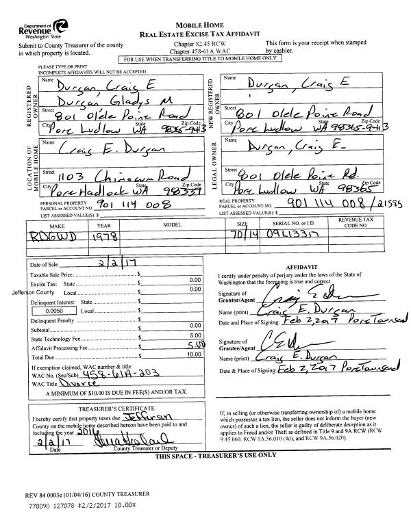 | 2 | 11/22/2017 | SWD | Statutory Warranty Deed | PORT LUDLOW ASSOCIATES LLC | SMITH TRUST | | | $397,000.00 | 129109 | |