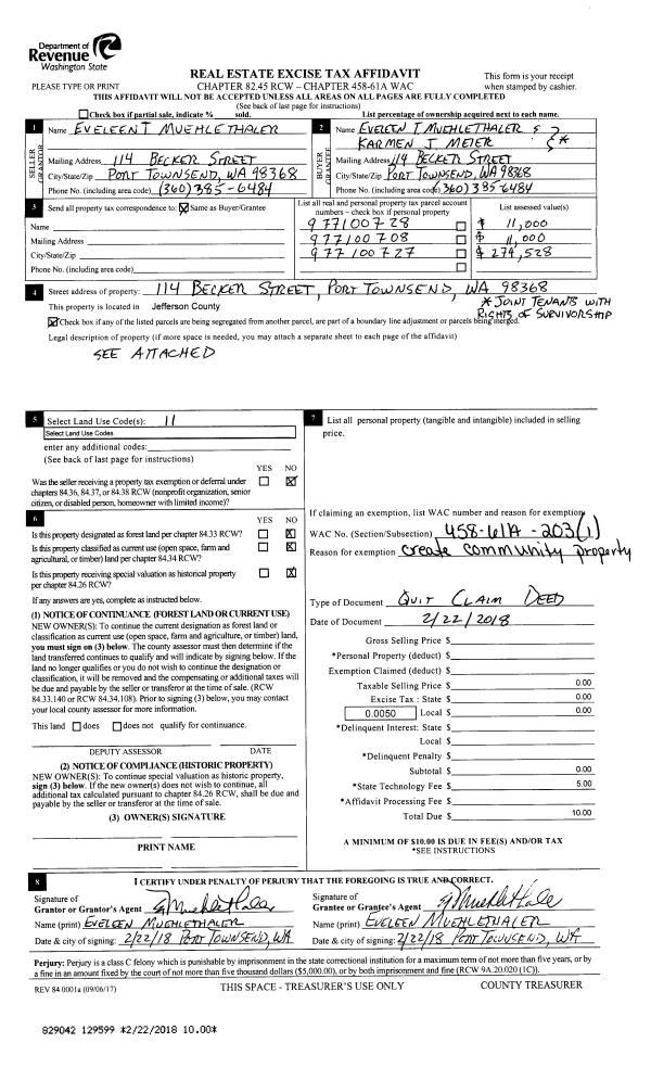 | 2 | 12/20/2012 | SWD | Statutory Warranty Deed | PORT LUDLOW ASSOCIATES LLC | DAVID F JURCA & LINDA J COCHRAN | | | $319,000.00 | 118549 | |