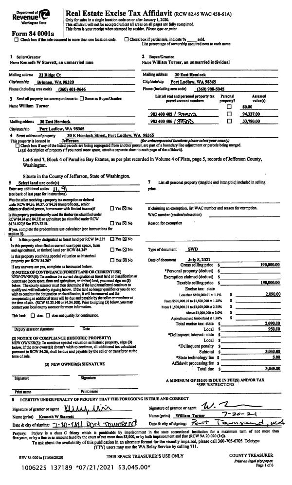 | 1 | 12/01/2021 | SWD | Statutory Warranty Deed | PORT LUDLOW ASSOCIATES LLC | MICHAEL A & DIANE E WALLULIS | | | $670,940.00 | 138185 | |
