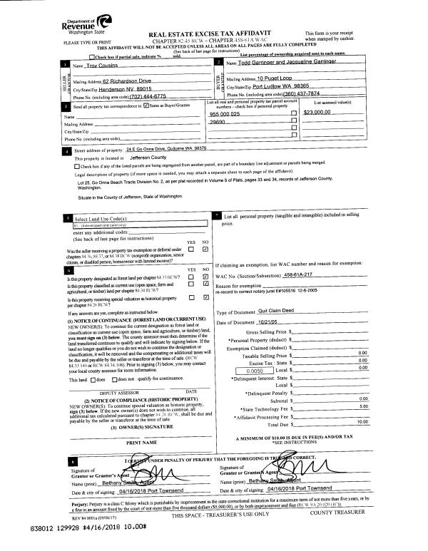| 3 | 08/07/2018 | SWD | Statutory Warranty Deed | PORT LUDLOW ASSOCIATES LLC | GREGORY A GILLES | | | $474,550.00 | 130760 | |