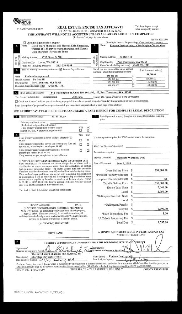 | Mailing Address: | 430 OLYMPUS BLVD PORT LUDLOW, WA 98365 | % Ownership: | 100.0000000000% |