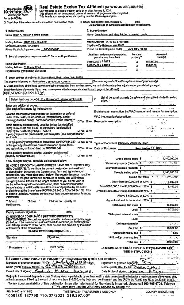 | Mailing Address: | 402 OLYMPUS BLVD PORT LUDLOW, WA 98365-9433 | % Ownership: | 100.0000000000% |