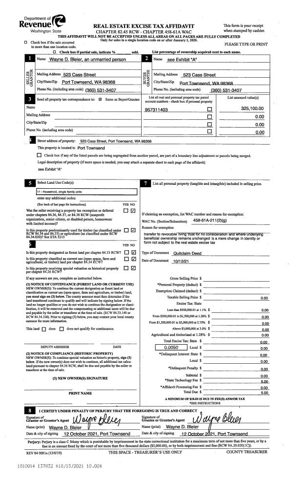 | Mailing Address: | JANET E TERPSTRA 206 OLYMPUS BLVD PORT LUDLOW, WA 98365-9414 | % Ownership: | 100.0000000000% |