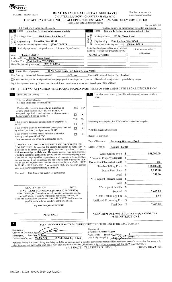 | 3 | 05/20/2011 | SWD | Statutory Warranty Deed | ABBOTT, EDWARD | VANDEWEGHE, ROBERTUS/JACOBA | | | $6,000.00 | 116039 | 0 |