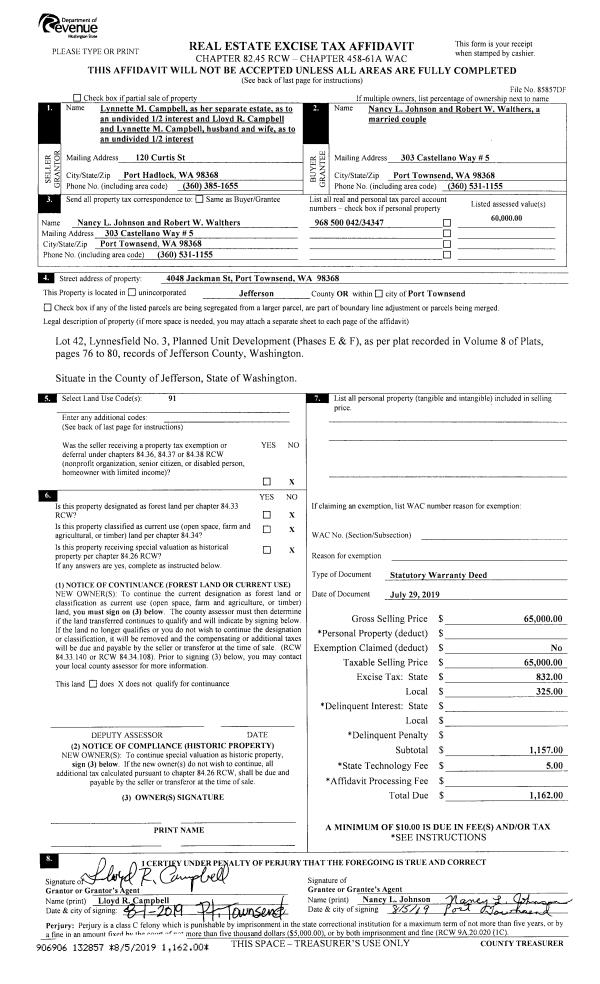 | 1 | 10/02/2024 | SWD | Statutory Warranty Deed | DONNA ANDERSON | ROBERT W & SUSAN MARSHALL | | | $111,000.00 | 143337 | |