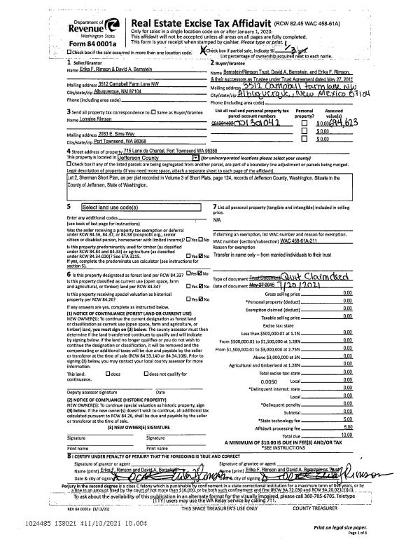 | 1 | 05/24/2022 | QCD | Quit Claim Deed | DONNA SLADE | KATHLEEN K LOCKHART | | | | 139141 | |
